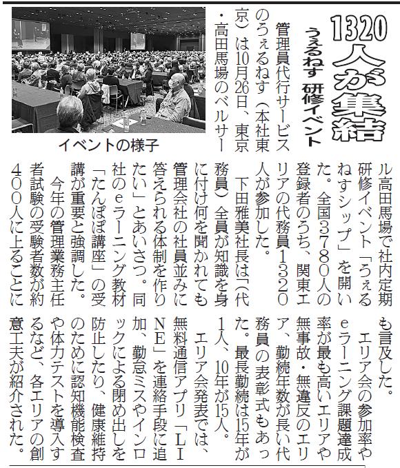 2025年11月5日(水)発行のマンション管理新聞に、うぇるねすシップに関する記事が掲載されました。