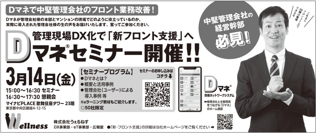 2025年2月5日発行の「マンション管理新聞」第1293号(12ページ)に、Dマネセミナーの広告が掲載されました。