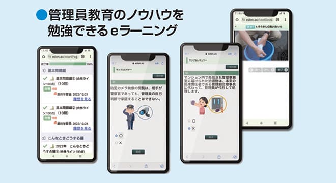 当社管理員は3000名を超え平均年齢は73歳。その全員がスマホを持ち、各種業務連絡のテキスト・画像・動画をタイムリーに見て報告もデジタルで即受発信しています。その実践的な教育ノウハウを導入し、稼働を可能にします。